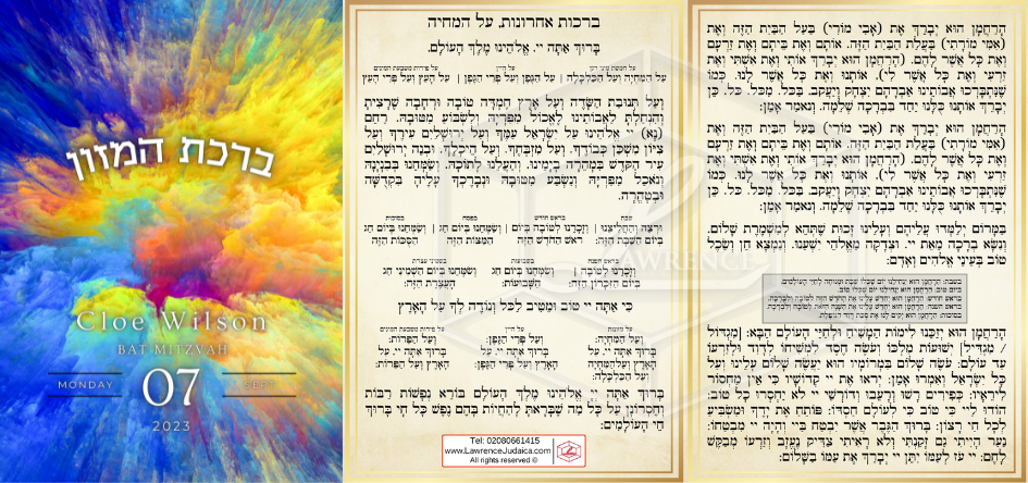 The benchers for a Bar/Bat Mitzvah will include the blessings before and after meals.