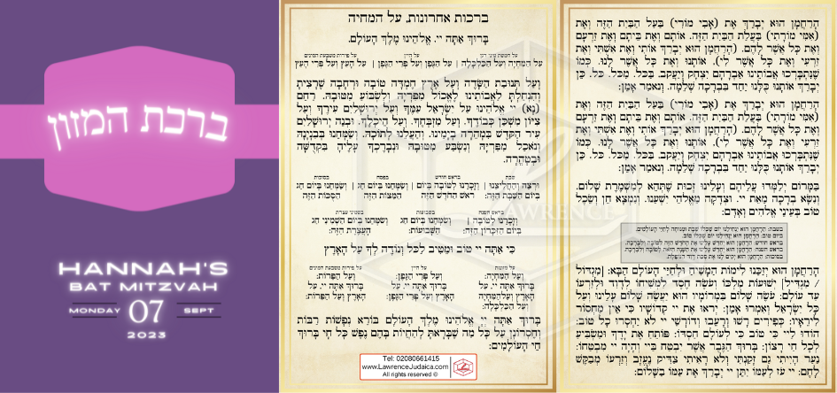 The benchers for a Bar/Bat Mitzvah will include the blessings before and after meals.