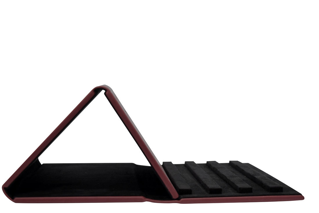 It folds up neatly in its closed position and looks just like a leather bound Siddur with a clean and sleek finish.
